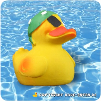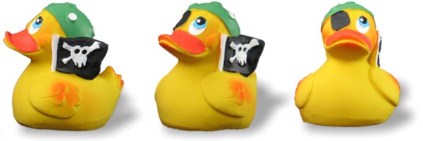 Mit Augenklappe und Jolly Roger erobert diese Badeente die weiten Wasser der Badewanne